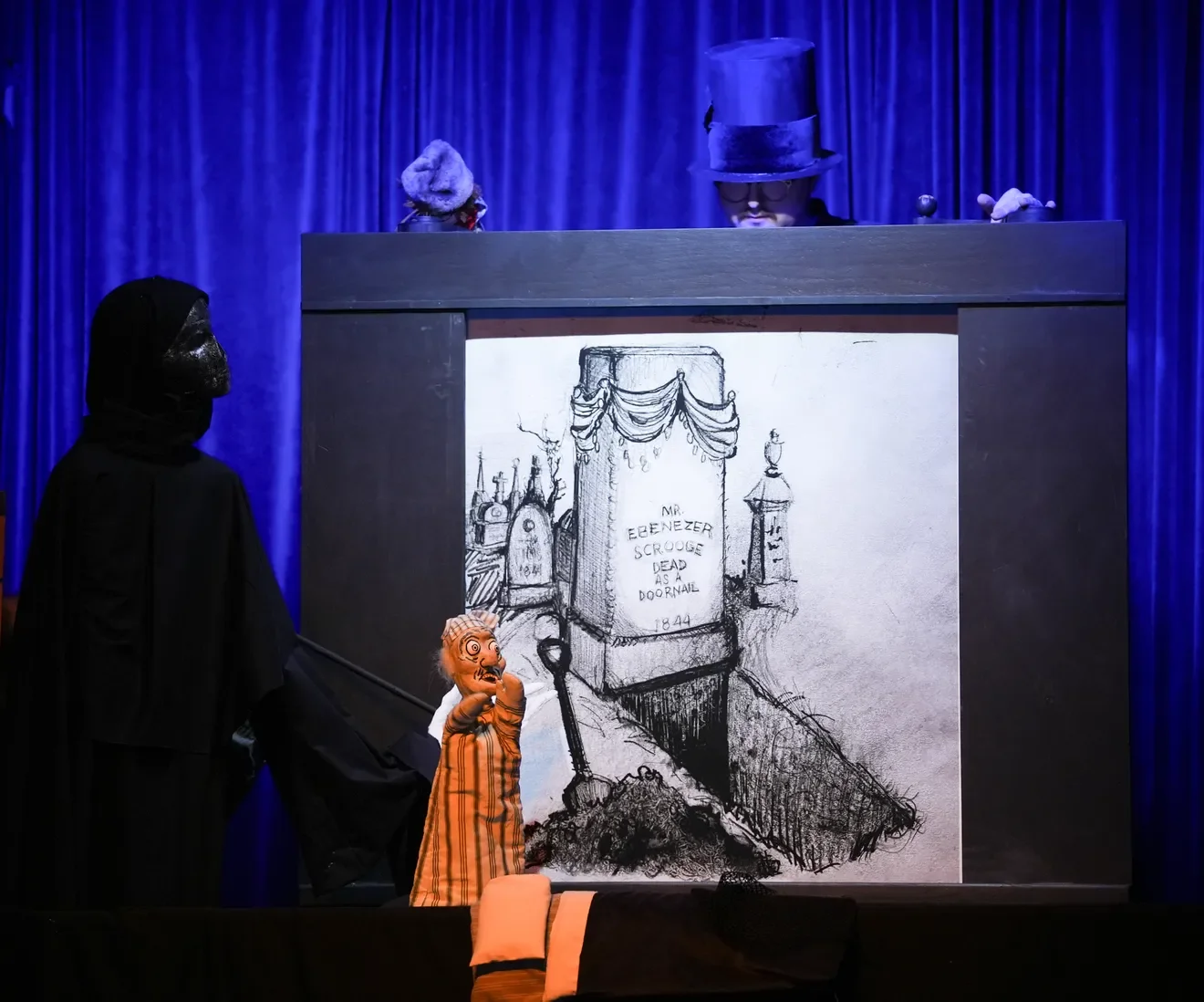 In December 2025 we were given the opportunity share an adaptation of Charles Dickens' beloved tale at lovely The Robin Teatre in REO Town, Lansing. This production combined John’s hand puppets, contemporary shadow theater, and a scrolling panorama (crankie) to bring the ghosts of Christmas past, present, and future to life. Performed with the help of four MSU students. Matthew Dae Smith of the Lansing State Journal beautifully documented our preparation and the show.